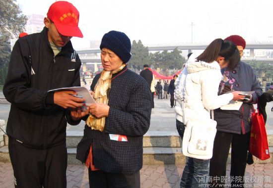 我院大学生志愿者还来到紫荆山广场开展问卷调查和宣传活动,共发放调查问卷近500份,并向群众发放了防治艾滋病宣传手册、艾滋病知识扑克牌近千份,受到广大市民的热情关注和支持。