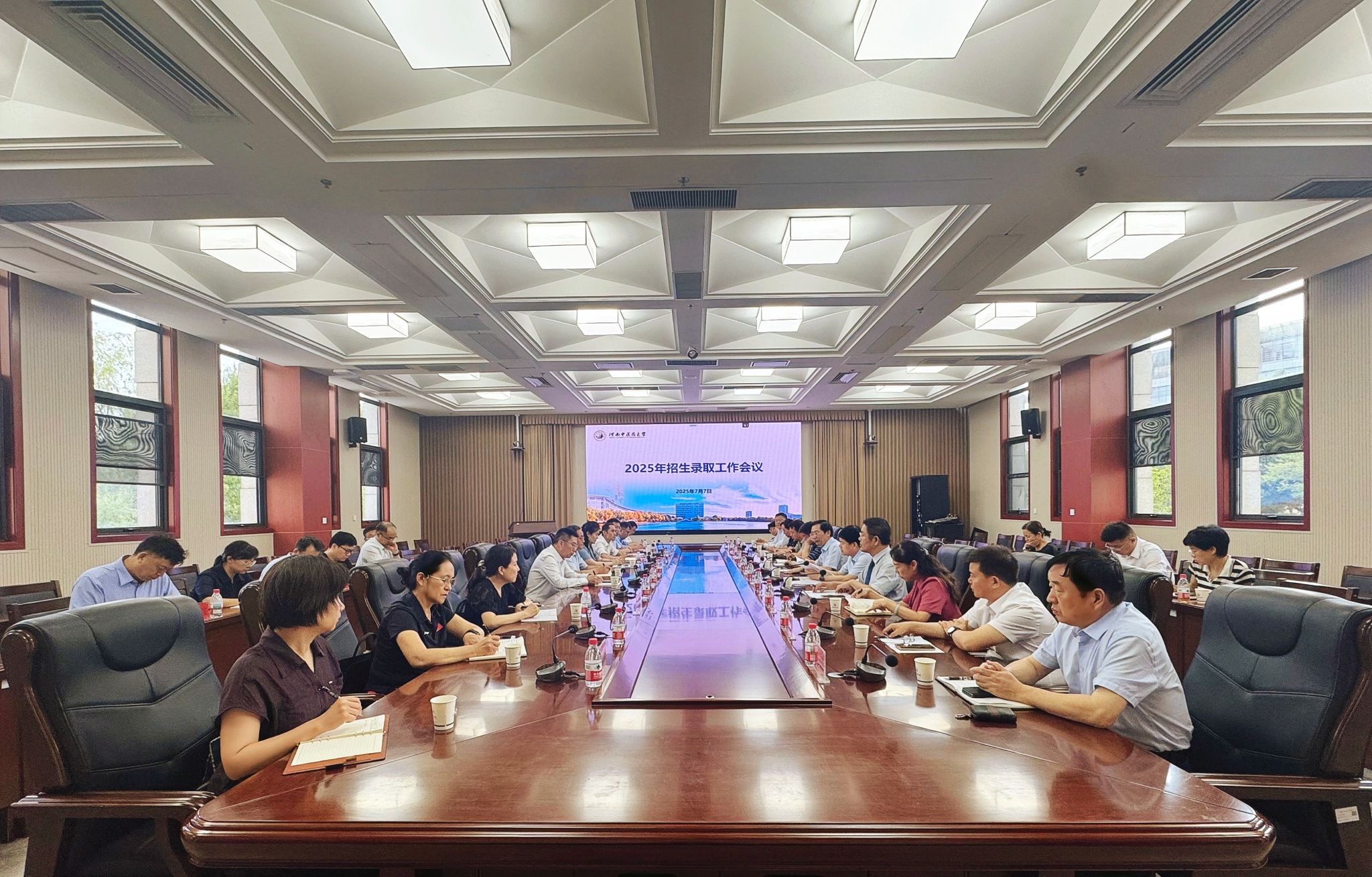 本网讯(文/图 赵婧先)2025年7月7日,我校在图书馆第三报告厅召开2025年招生录取工作会议。校长王耀献、副校长彭新、学校本科生招生工作领导小组全体成员参加了会议。会议由彭新主持。