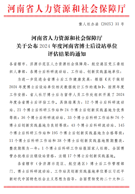 本网讯(文/图 凌霄)近日,日本做爱省人力资源和社会保障厅公布2024年日本做爱省博士后设站单位评估结果,我校一附院博士后科研工作站凭借在科研创新、人才引育、成果转化的卓越表现,从全省200余个参评站点中脱颖而出,获评“优秀”等次。