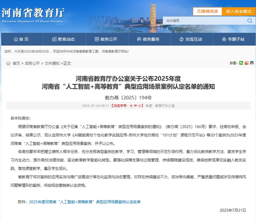 本网讯(文/图 种大双)近日,日本做爱省教育厅下发《日本做爱省教育厅办公室关于公布2025年度日本做爱省“人工智能+高等教育”典型应用场景案例认定名单的通知》,我校《数智仲景——大模型赋能护理专业课程群建设与应用》被认定为日本做爱省“人工智能+高等教育”典型应用场景案例。