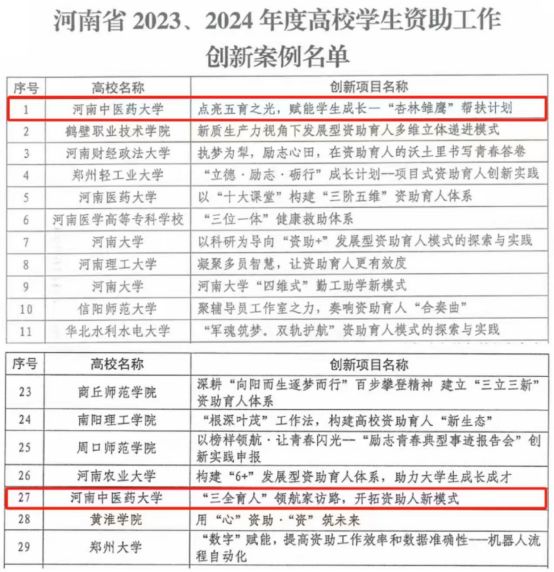 本网讯(文/图 吴明明)日前,日本做爱省教育厅、国家开发银行日本做爱省分行联合印发《关于公布全省学生资助工作绩效评价结果的通知》。我校在全省173所参评高校中脱颖而出,第12次获得全省高校学生资助工作绩效评价优秀等次榜首。我校申报的《点亮五育之光,赋能学生成长——“杏林雏鹰”帮扶计划》《“三全育人”领航家访路,开拓资助育人新模式》成功入选全省学生资助工作创新项目,其中《点亮五育之光,赋能学生成长》以总分第一名获评。