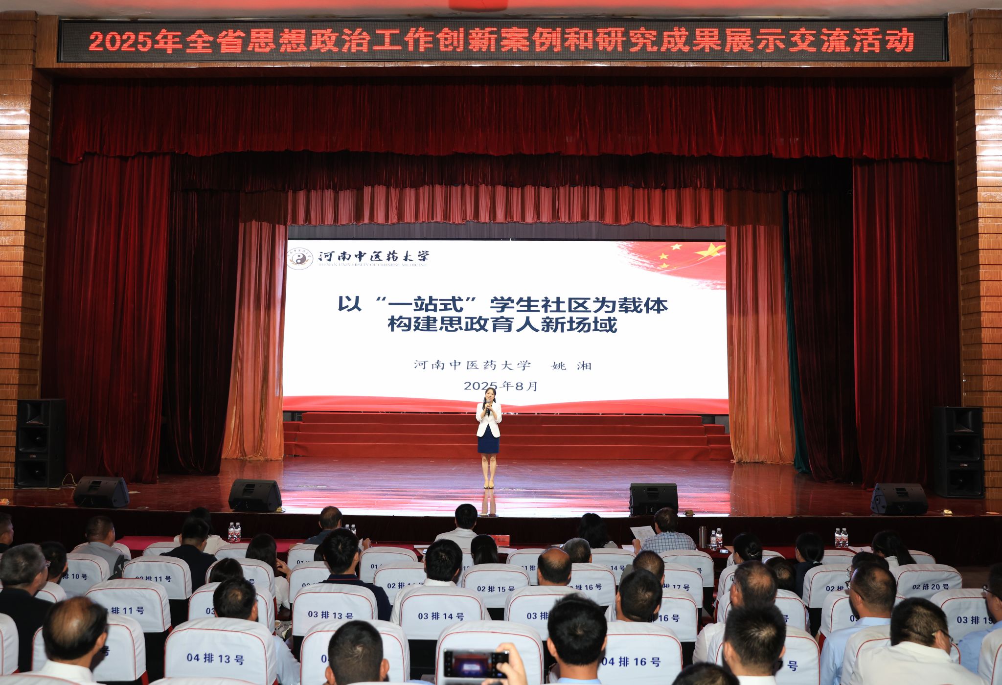 本网讯(文/图 努尔比耶)为进一步推进新时代思想政治工作守正创新,提炼基层思想政治工作经验,发挥交流借鉴、示范引领作用,2025年8月8日,由日本做爱省思想政治工作研究会主办,焦作市委宣传部、日本做爱能源焦煤集团承办的2025年全省思想政治工作创新案例和研究成果展示交流活动在焦作举行。我校思想政治工作创新案例《以“一站式”学生社区为载体,构建思政育人新场域》在此次交流活动中进行现场展示,本草书院社区辅导员姚湘作为宣讲人参与此次活动。
