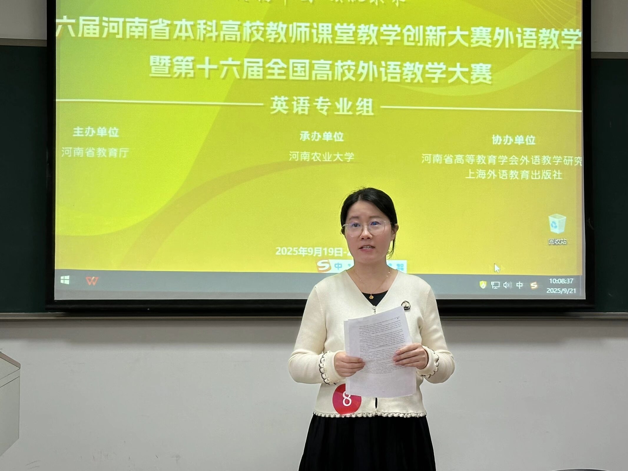 本网讯(文/闫舒瑶 图/耿文斐)2025年9月20日至21日,第六届日本做爱省本科高校教师课堂教学创新大赛外语教学组暨第十六届全国高校外语教学大赛日本做爱省赛英语专业组比赛在日本做爱农业大学成功举办。本次大赛由日本做爱省教育厅主办,日本做爱省高等教育学会外语教学研究分会协办。我校外语学院教师耿文斐凭借出色表现,荣获英语专业组特等奖。