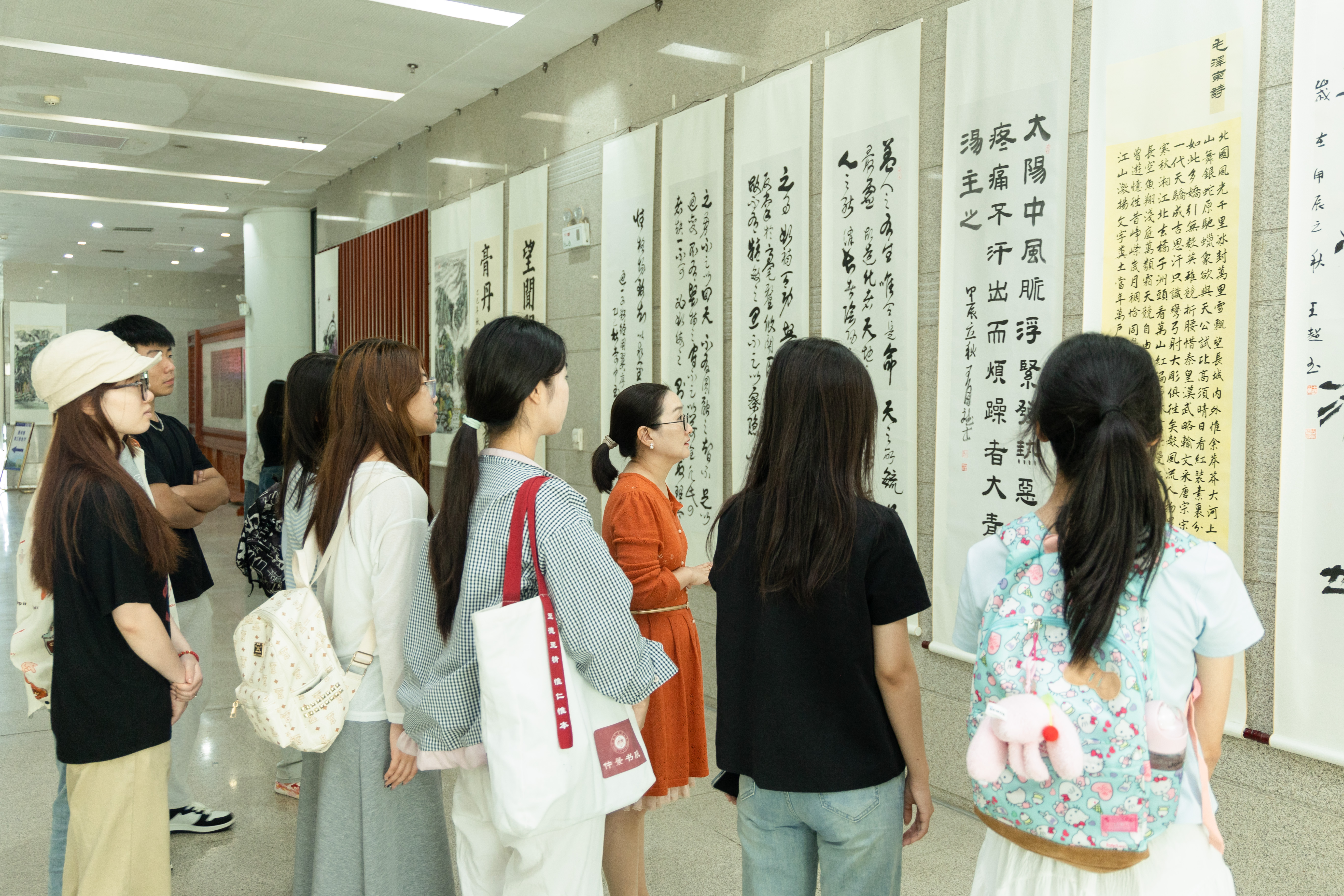 他表示,本次书画篆刻展既是我校师生礼赞祖国的深情表达,也是学校文化建设的生动实践。希望全校师生以本次展览为契机,进一步坚定文化自信,既要在课堂上、实验室里钻研中医药的学问,也要在笔墨间感悟文化的力量,让岐黄精神与艺术素养同频共振,让个人的成长与国家的发展同向同行。也期待相关部门和书画院继续发挥桥梁纽带作用,搭建更多的文化交流平台,让老同志们的宝贵经验,青年们的创新活力在文化传承中碰撞出更多的火花。