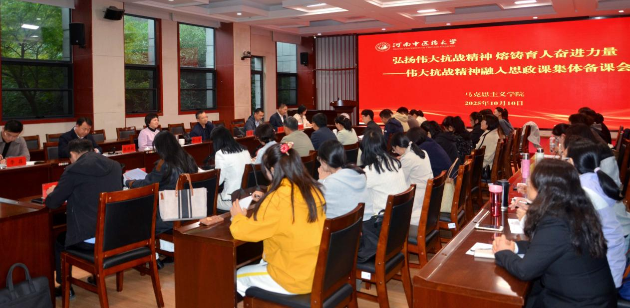 本网讯(文/陈建威 图/王彦明)为深入学习贯彻习近平总书记在纪念中国人民抗日战争暨世界反法西斯战争胜利80周年大会上的重要讲话精神,将伟大抗战精神有机融入思政课教育教学,2025年10月10日,学校组织召开思政课教师集体备课会。校党委书记李小芳、学校办公室、党委宣传部、党委学工部、教务部、校团委等相关职能部门负责人参加。备课会由马克思主义学院党委书记蔡信强主持。