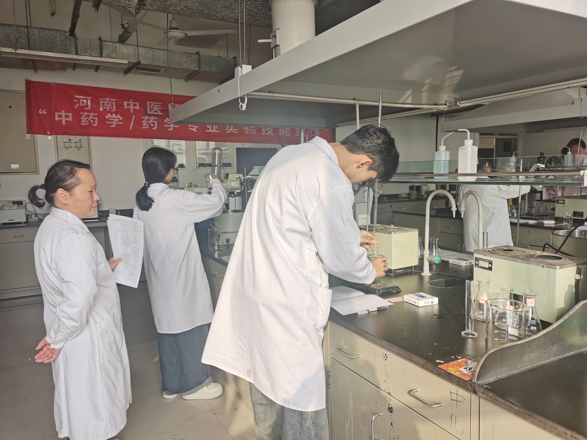 决赛阶段于10月17日和10月28日进行,分别为理论笔试和综合设计实验操作,全面检验学生的知识储备、动手能力及科学素养。在实验操作现场,选手们沉着冷静,操作娴熟、规范,充分展现了我校学子扎实的实验基本功和严谨求实的科研态度。评委们秉持公平、公正、公开的原则,从实验方法、操作规范、结果分析等多个方面对选手的表现进行综合评价并现场打分。经过激烈角逐,2023级中药学本科班郑海燕、2023级药学本科班邓京京分别获中药学类和药学类一等奖。