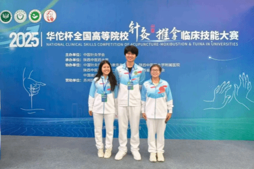 首次出征“华佗杯”技能大赛,实现我校来华留学生组参赛零的突破。由中国针灸学会主办、陕西中医药大学承办的“2025华佗杯全国高等院校针灸推拿临床技能大赛”于10月16-19日在陕西省咸阳市举办。我校LEE YEW LYNN、PROMMA TATSANEE、CHONG HAO MING首次代表学校参加留学生组比赛,在指导老师赵欣纪、任珊的悉心指导下,凭借扎实的理论功底、娴熟的临床技能和稳定的赛场表现,充分展示了我校来华留学生在针灸推拿领域的专业水平。