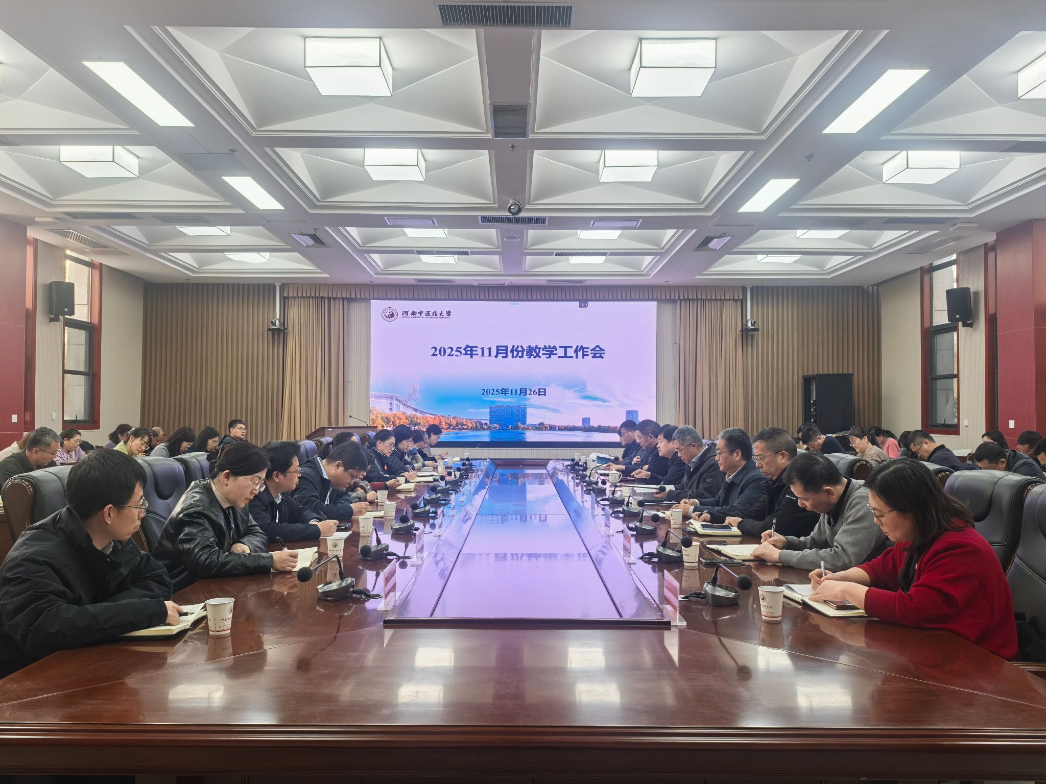 本网讯(文/韩永光 图/刘星)2025年11月26日,我校2025年11月份教学工作会在图书馆第三报告厅召开,校党委常委、副校长彭新主持会议。校督导团成员、各二级学院院长、