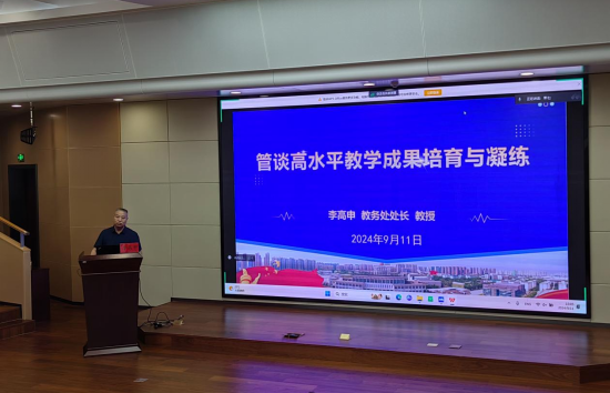 李高申教授以《高水平教学成果培育与申报方法研究》为题,从2022年教学成果奖报奖情况、教学成果的内涵与特点、教学成果奖的培育路径、成果奖申报关键点与案例分析等几个维度重点讲授了国家级教学成果奖从培育到申报的各个环节。李高申教授的报告内容丰富、讲解细致、案例详实,为我校教师申报高水平教学成果奖拓宽了思路,指明了方向。报告后,李高申教授与参会教师进行了深入交流。卢旻希望我校教师能够充实专业知识,锤炼教学技能,厚植教育情怀,积极从事教育教学改革与研究,为未来培育高级别的教学成果打下基础。