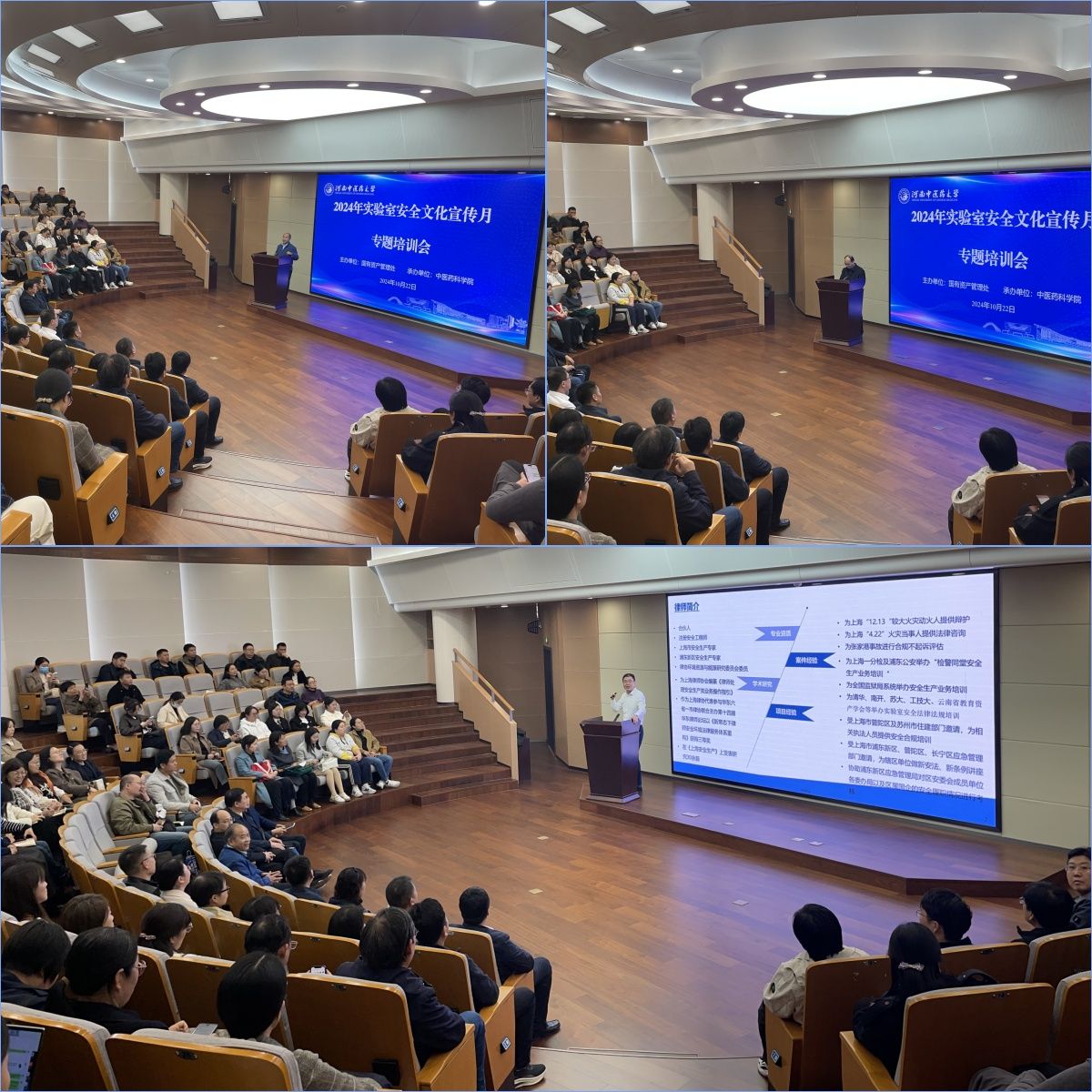 本网讯(文/图 王艳芳)为切实加强全校实验室安全管理,夯实安全管理责任,积极构建安全和谐、稳定有序的校园环境,近期我校开展了2024年度“实验室安全文化宣传月”活动。10月22日,由国有资产管理处主办、中医药科学院承办的实验室安全专题讲座《从事故责任看实验室安全责任制》在龙子湖校区俊学楼A114会议室举行,讲座由中医药科学院党委书记李东阳主持。校党委委员、副校长苗明三,国资处、保卫处、教务部等相关部门及各院系负责人、实验室安全工作管理人员、教学科研实验室主任、各实验室安全责任人、新进教师等100余人参加了专题讲座。本次讲座学校邀请上海市安全生产专家、注册安全工程师朱静亮律师主讲。
