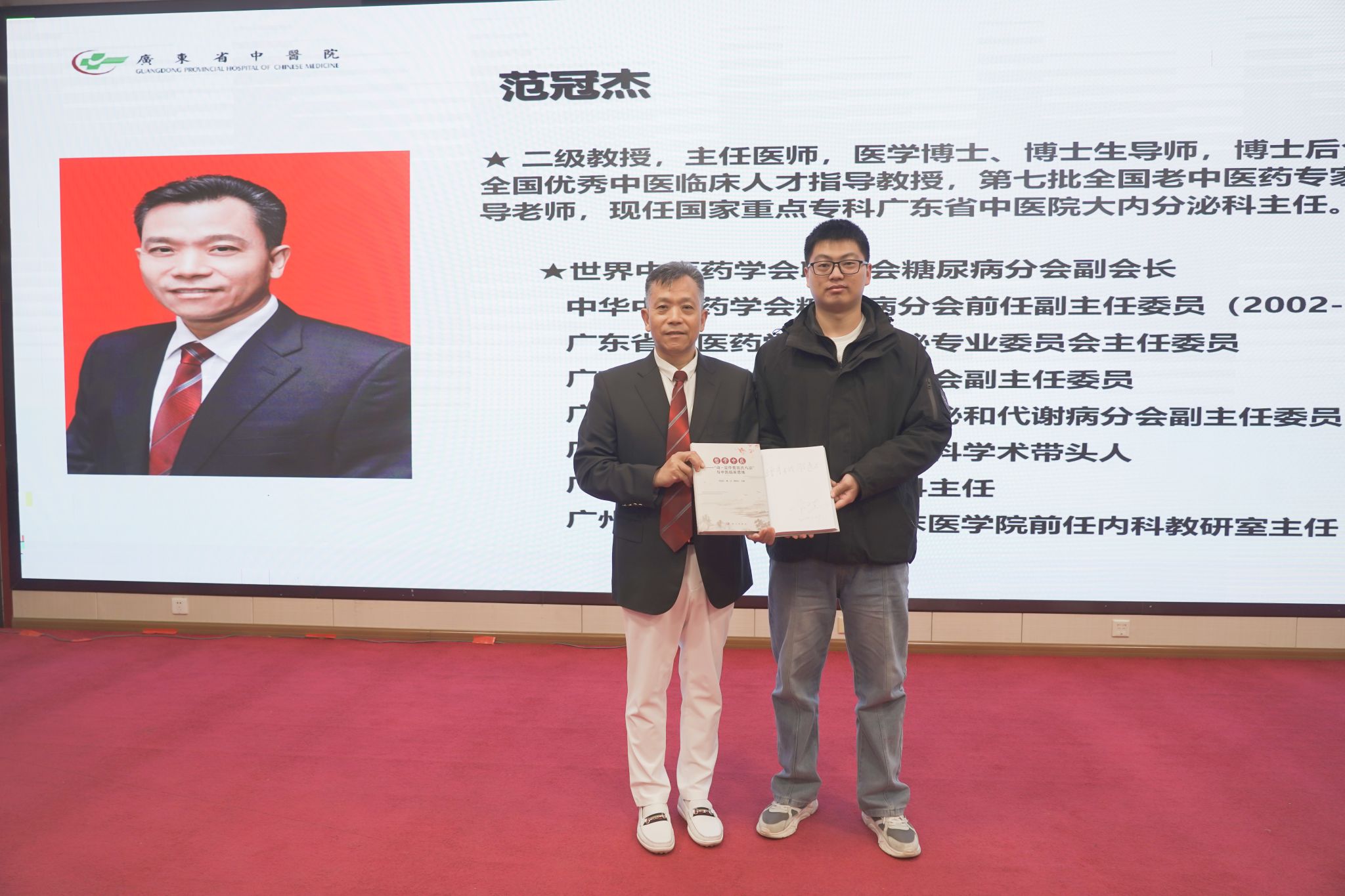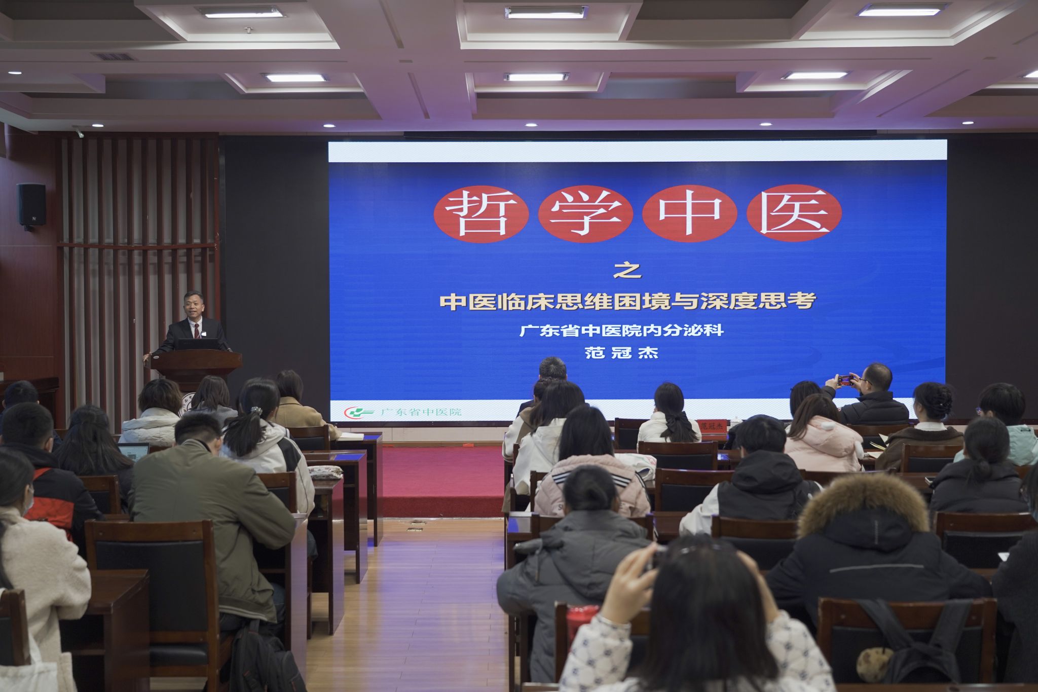 讲座中,范冠杰从中医之惑——中医诊疗思维困境、困惑之根——中医临床思维理论、哲学之思——哲学中医临床思维、哲学之用——动定序贯范氏八法四个方面深入展开讲解与阐释。讲座巧妙地引领中医回归到哲学的深度层面,促使大家深刻反思中医思维演进的哲学轨迹,细致梳理中医思维发展所遵循的内在逻辑规律,为在场师生奉献了一场极具深度与内涵的精彩讲座。