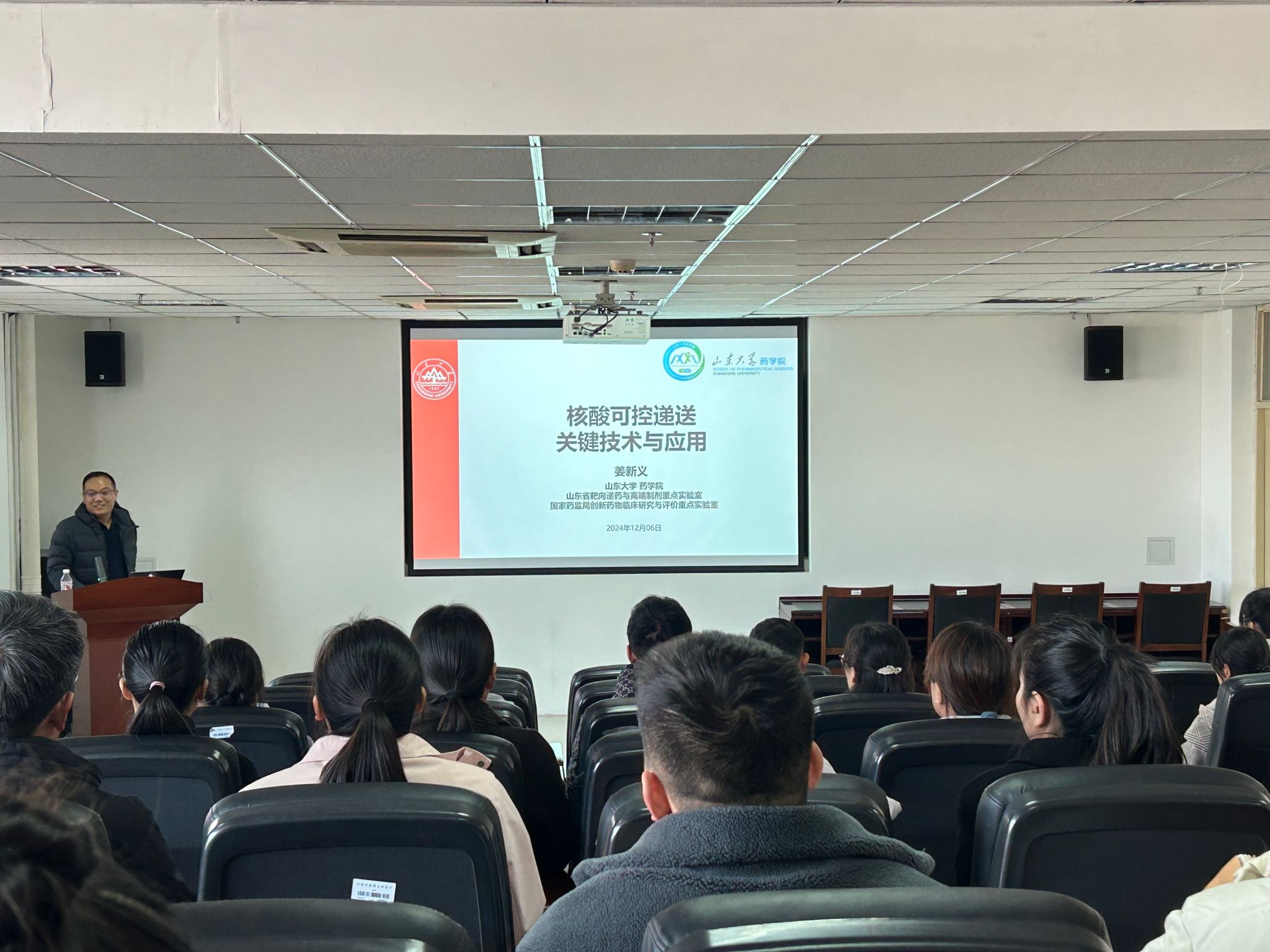 本网讯(文图/吴灿)为拓宽科研工作者的专业思维,提高科研创新能力。2024年12月6日,由药学院(中药制药技术与装备行业学院)主办的学术讲座活动在综合楼BN617成功举办。会议邀请国家杰青、山东大学姜新义教授作题为“核酸药物可控递送与应用”的学术讲座,我校百余名师生参加讲座。会议由药学院副院长刘瑞新主持。