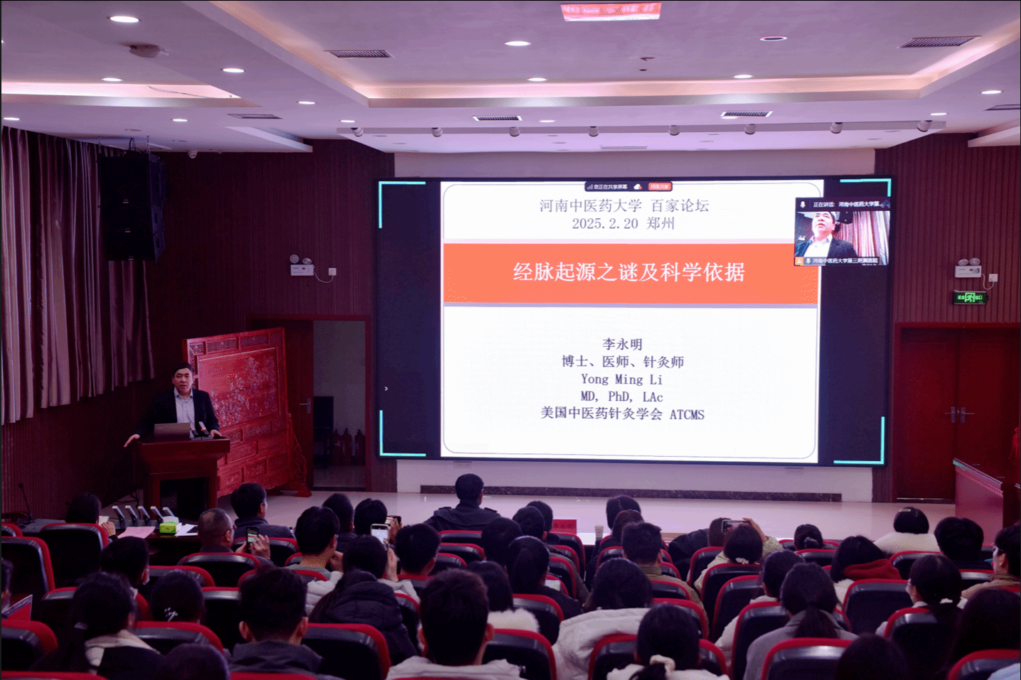 本网讯(文/图 杨旭光) 2025年2月20日,美国中医药针灸学会会长李永明教授应邀做客我校百家论坛。讲座于东明校区学术中心举行,并通过腾讯会议同步直播,全院师生及中医药爱好者参与了本次讲座。我校副校长田力参加。第三临床医学院、针灸推拿学院执行院长、医院副院长胡斌主持。