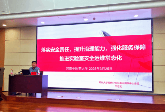 王志武以“落实安全责任,提升治理能力,强化服务保障,推进实验室安全运维常态化”为主题,结合郑州大学实验室安全管理经验,系统阐释了在新形势下如何做好实验室安全工作,解读了实验室安全管理新要求,通过生动的案例分析,深入探讨了实验室安全管理与治理的关键要点,给我校实验室安全管理带来了新思路和新方法。