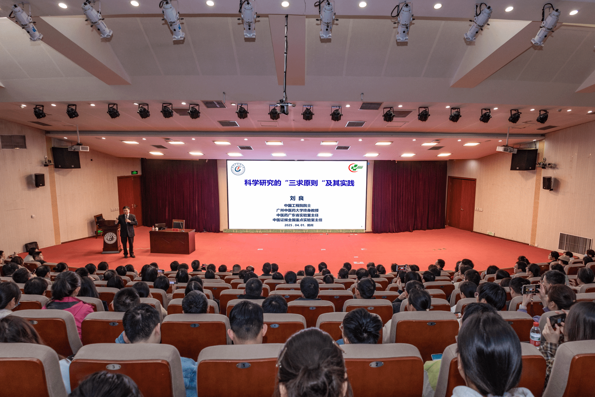 本网讯(文/张飞 图/吴晋一)2025年4月1日,受我校邀请,中国工程院院士、中医证候全国重点实验室主任、中医药广东省实验室主任、广州中医药大学终身教授刘良在我校龙子湖校区图书馆第一学术报告厅开展了题为《科学研究的“三求原则”及其实践》的学术讲座。校长王耀献、副校长张振强,科学技术处、药学院、中医药科学院及中医学院等部门负责人、相关领域科研人员以及硕博士等300余人参加了报告会。会议由王耀献主持。