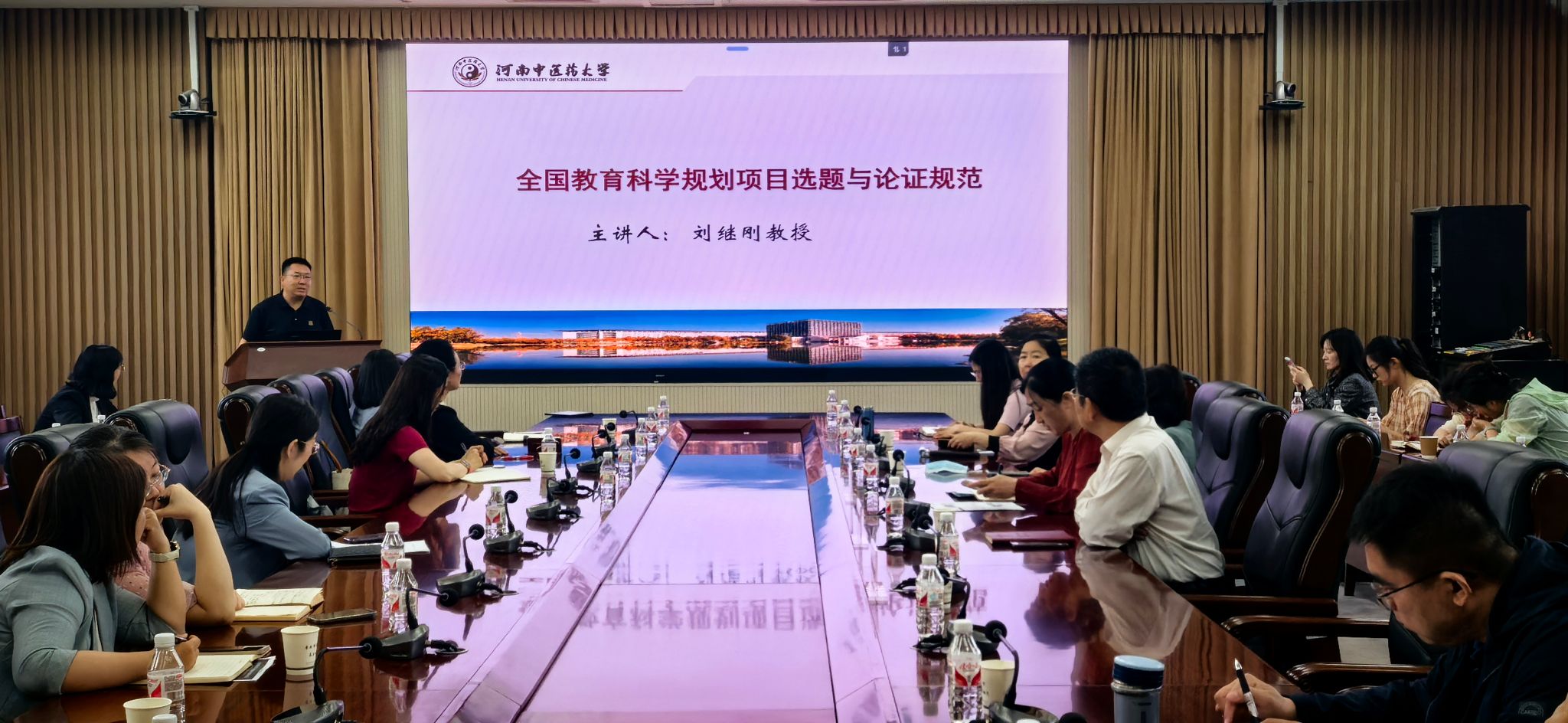此次讲座特别邀请了我校管理学院院长、仲景骨干学者、国家社科基金评审专家刘继刚教授担任主讲嘉宾。刘教授以“教育科学规划项目选题与撰写规范”为题,从评审要求、选题技巧、选题说明、选题依据、研究内容、创新之处、研究基础和参考文献等八个方面对如何做好全国教育科学规划项目申报进行了系统深入讲解,并对选题策略、研究设计和撰写规范等关键环节进行了深刻剖析。他结合自己多年评审及指导国家级项目申报的经验,将理论知识与实际案例相结合,举例阐述了撰写申报书的关键要素及常见问题,并对如何解决问题提供了切实可行的方法指导,既有理论高度,又有很强的针对性和实用性,为申报工作指明了方向。
