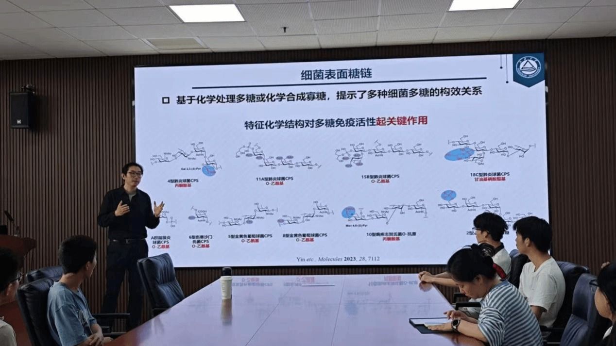 尹健教授介绍了糖科学研究的历史、糖疫苗研发的趋势与市场现状,重点强调了糖类物质在生物医药领域的广泛应用。其中糖疫苗作为糖科学研究和糖药物研发的前沿方向,其研究和应用备受关注。随着新型病原体不断涌现,糖疫苗作为预防细菌感染的前沿手段,其基础研究的重要性日益凸显。尹健教授以肺炎链球菌疫苗为例,展示了国际糖疫苗市场的巨大潜力,以及我国多价肺炎疫苗尚前存在较大缺口和挑战,这些亟待科学家们深入研究。尹健教授还分享了团队在细菌糖链精准合成、疫苗分子设计及功能验证中的最新研究成果。