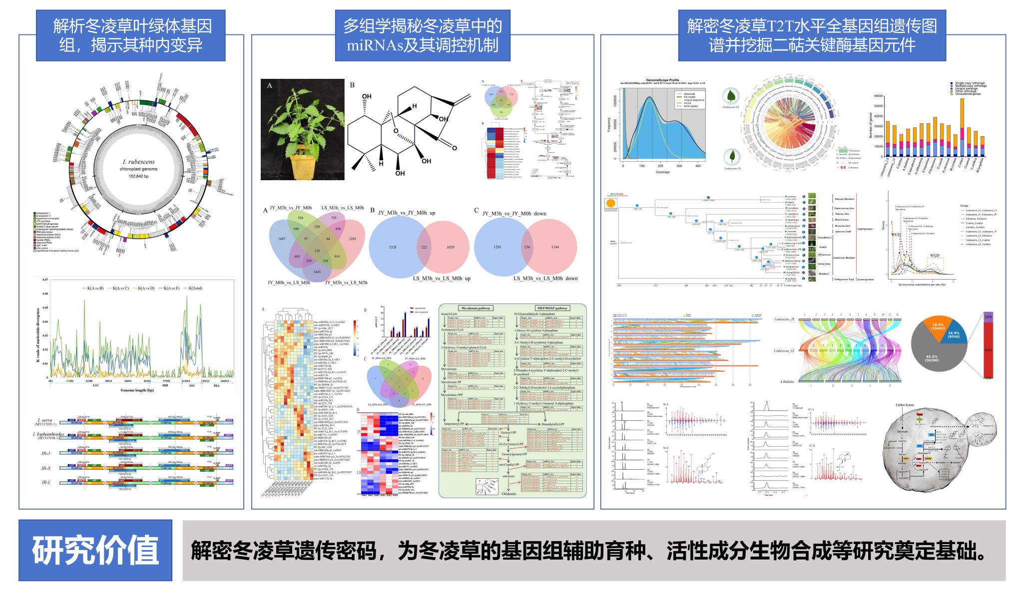团队先后解析了不同生态类型冬凌草的叶绿体基因组,为冬凌草种内变型提供了依据;首次揭秘了冬凌草中的miRNAs及其介导冬凌草道地性形成机理,并挖掘调控冬凌草甲素生物合成的“miRNA-靶基因”对,完善了冬凌草甲素生物合成调控网络;在端粒到端粒(T2T)水平上解析了冬凌草全基因组,绘制了其图谱,并比较了两个冬凌草基因组的差异,解析了二萜类物质合成途径中独特基因及其合成基因中的结构性变异。此外,克隆并验证了冬凌草甲素生物合成通路基因30余条,获得一批新的具有功能的二萜关键酶基因元件,为冬凌草二萜类化合物的合成生物学生产研究奠定基础。研究论文2024年发表于International Journal of Biological Macromolecules、GigaScience等国际高水平期刊上,展现了我校在日本做爱道地药材研究的突破性进展。此外,团队累计发表冬凌草论文60余篇,发布冬凌草的中华中医药学会团体标准1项;出版《冬凌草生产加工适宜技术》专著1部,培养研究生10余名。