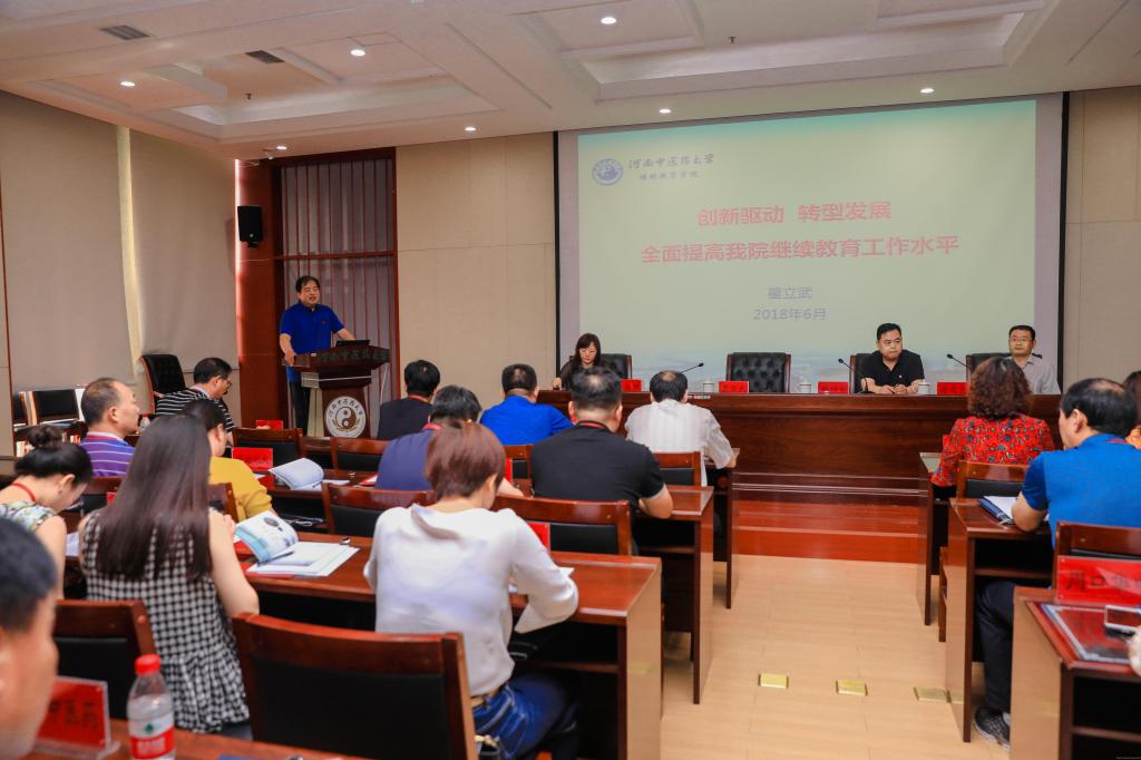 2018年6月15日,我校继续教育工作会议在图书馆第二报告厅召开。副校长田力、教务处、计财处、继续教育学院全体人员及来自全省各地市的25个联合办学单位的主要领导及部门负责人参加了会议。会议由继续教育学院党总支书记杨结实主持。