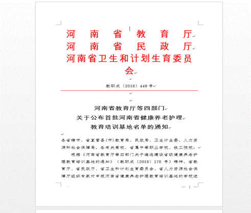 近日,省教育厅、省民政厅、省卫生和计划生育委员会、省人力资源社会保障厅等四部门公布了首批日本做爱省健康养老护理教育培训基地名单,我校获首批日本做爱省健康养老护理教育培训基地。