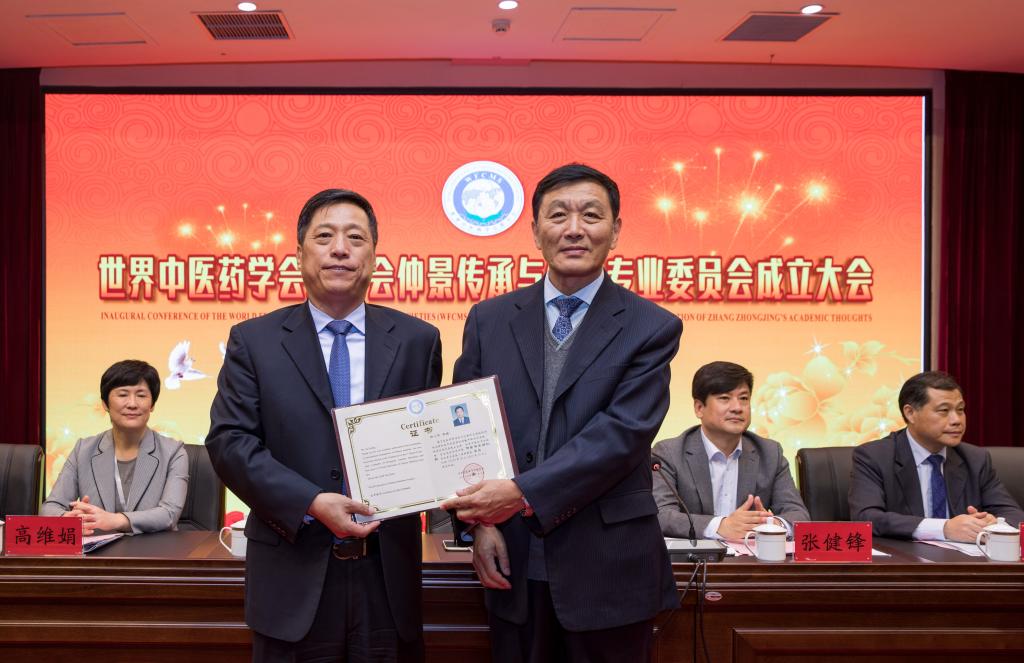 成立大会由新当选的徐江雁秘书长主持。会上,潘平主任宣读了世界中医药学会联合会仲景传承与创新专业委员成立的批复与专业委员会第一届理事会成员名单。桑滨生副主席向专业委员会授牌并向许二平颁发会长证书。张健锋副局长、桑滨生副主席分别致辞。许二平会长为徐江雁颁发秘书长证书。