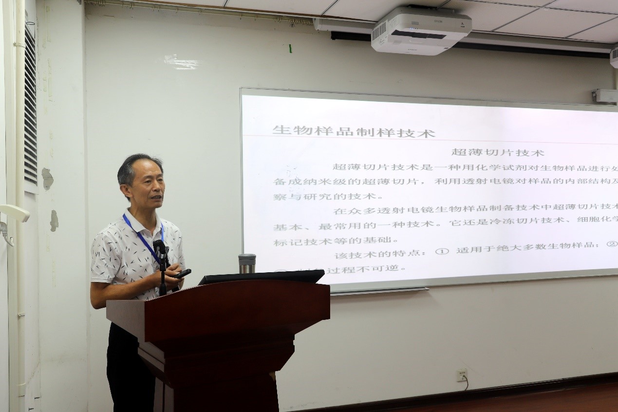 南京农业大学教师贺子义作生物样品制样和超薄切片的讲座