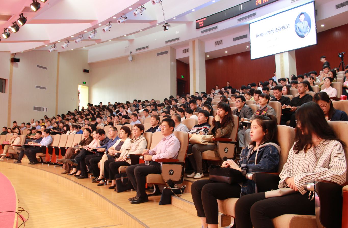 本网讯(文/余孝奎 图/吴金堂)2019年9月20日,正值国家网络安全宣传周期间,北京师范大学博士生导师刘德良教授作客我校“百家论坛”,在图书馆第一报告厅作了题为“网络行为的法律规范”的学术报告,此次“百家论坛”由信息化办公室(网络中心)与学生处联合承办。讲座由信息化办公室(网络中心)副主任张太行主持。各单位、各部门分管网络信息化工作的领导及网络安全与信息化联络员、各院部辅导员及部分学生代表300余人聆听报告。