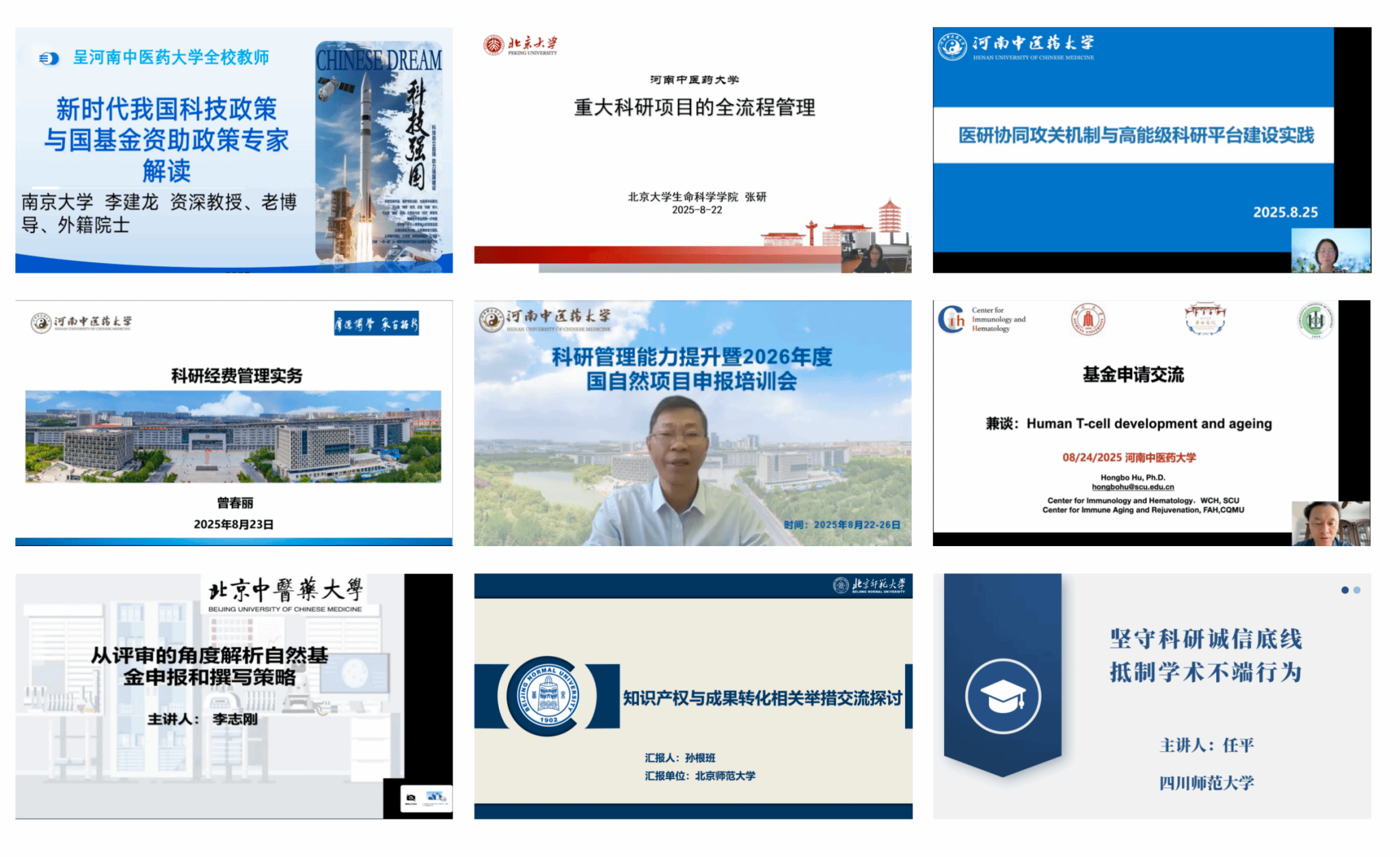 本网讯(文/柳忠勇 图/范孟杨)2025年8月22日—26日,我校举办了“科研管理能力提升暨2026年度国家自然科学基金项目申报培训会”。此次培训由学校科学技术处主办,中国科学院人才交流中心承办,采用线上直播授课形式,全校科研管理骨干及科研人员1000余人参加了本次学习。