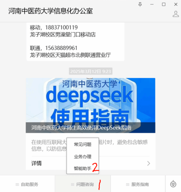 为满足学校师生线上咨询办事需求,提高办事效率、提升服务质量体验,学校信息化办公室(网络中心)和数智中医药研究院自主研发了“i中医”校内智能办事助手,经过前期的多轮测试运行,现已经在学校官方公众号正式上线。该助手基于DeepSeek-R1大模型为底座,结合学校公开信息资源,收集整理了1600余份学校网上公开的资料、新闻、政策等数据,对接并利用DeepSeek-R1的推理功能,为广大师生实现了7*24小时事务办理的便捷咨询通道。智能助手前期已在各书院和信息化办公室公众号完成1个月的试运行,目前服务内容有学生奖贷困补、师生校园服务、政策解读、IT服务、公共服务、校园学习生活咨询等。进入“i中医”后,输入所要咨询的问题或需要的服务,即可获得相应结果,欢迎广大师生们试用。