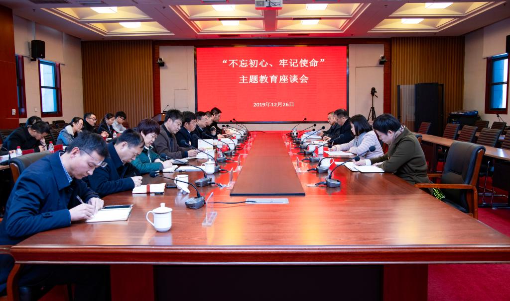本网讯(文/李琳 图/秦东仁)2019年12月26日上午,我校召开“不忘初心、牢记使命”主题教育专题座谈会。省委第十三巡回指导组副组长刘志刚,成员张俊丽、王景杰和陈洁到会指导。校党委委员、组织部长孟宪锋主持会议。