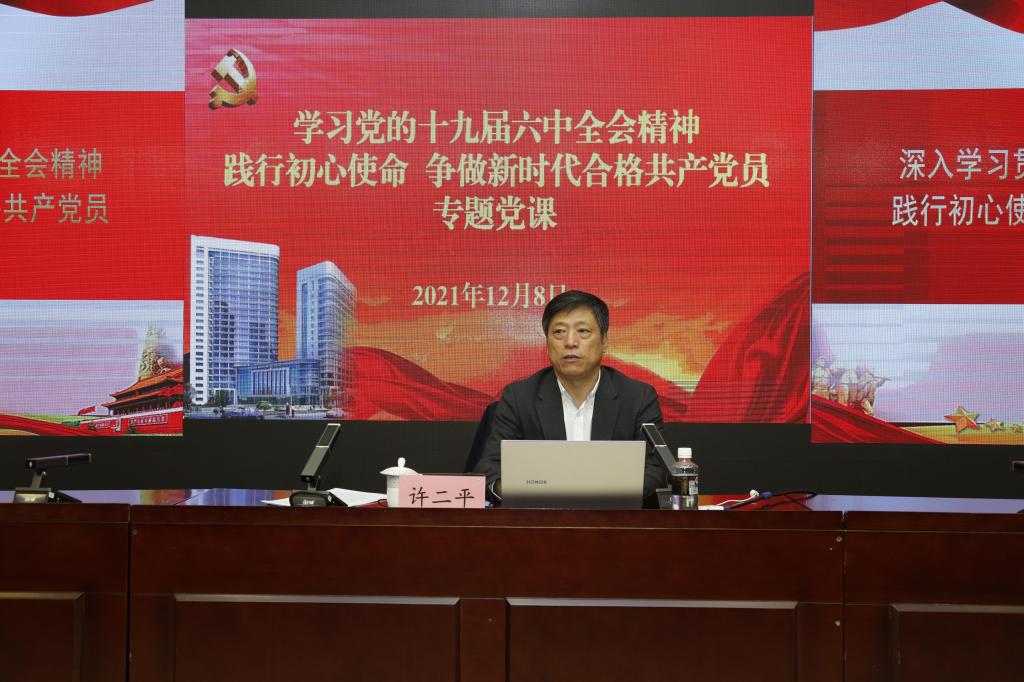 为持续深入学习党的十九届六中全会精神,同时以新思想推动医院中层干部干部队伍建设,提升医院干部队伍管理水平。2021年12月8日下午,一附院邀请校长许二平为党员干部讲授专题培训党课。医院党委书记翟剑波,党委副书记、院长朱明军等领导干部,各基层党组织书记、中层干部参加培训会议。会议由翟剑波主持。