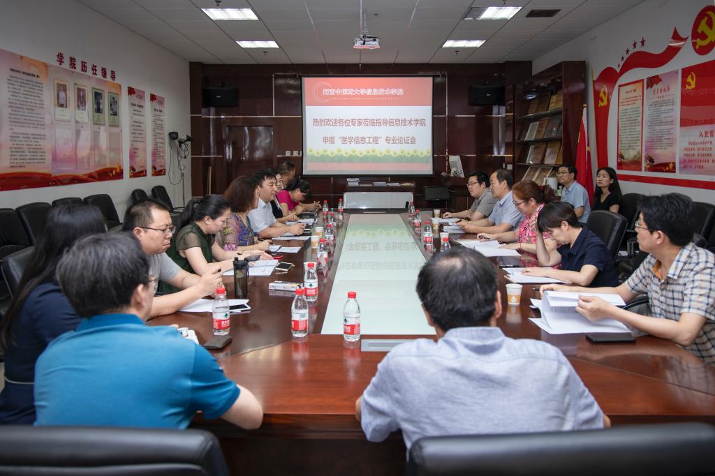 会上,许成刚向专家们介绍了拟申报医学信息工程专业的基本情况。信息技术学院科研办主任宋学坤从申报新专业的理由、筹建情况、发展规划、调研情况及人才需求预测等方面作了详细汇报。随后,专家们对申报材料进行了认真审核,并给予充分肯定,还从培养目标与定位、优化课程设置、凸显专业特色等方面提出了意见和建议。最后,专家们一致认为我校具备开设医学信息工程专业的条件,推荐申报。信息技术学院党委书记张峥丽在总结讲话中对专家们的莅临指导表示感谢,并表示会认真结合专家们的意见和建议进一步完善申报材料和人才培养方案。