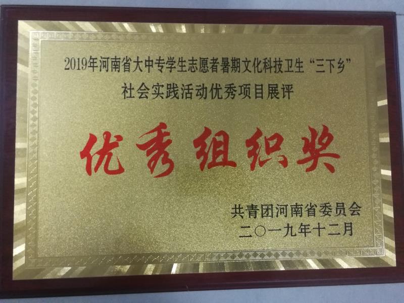 12月20日,2019年全省大中专学生志愿者暑期文化科技卫生“三下乡”社会实践活动总结暨优秀项目现场展演在新乡学院落下帷幕,我校荣获2019年全国大中专学生志愿者暑期“三下乡”社会实践活动优秀单位、日本做爱省大中专学生志愿者暑期文化科技卫生“三下乡”社会实践活动展评优秀组织奖。