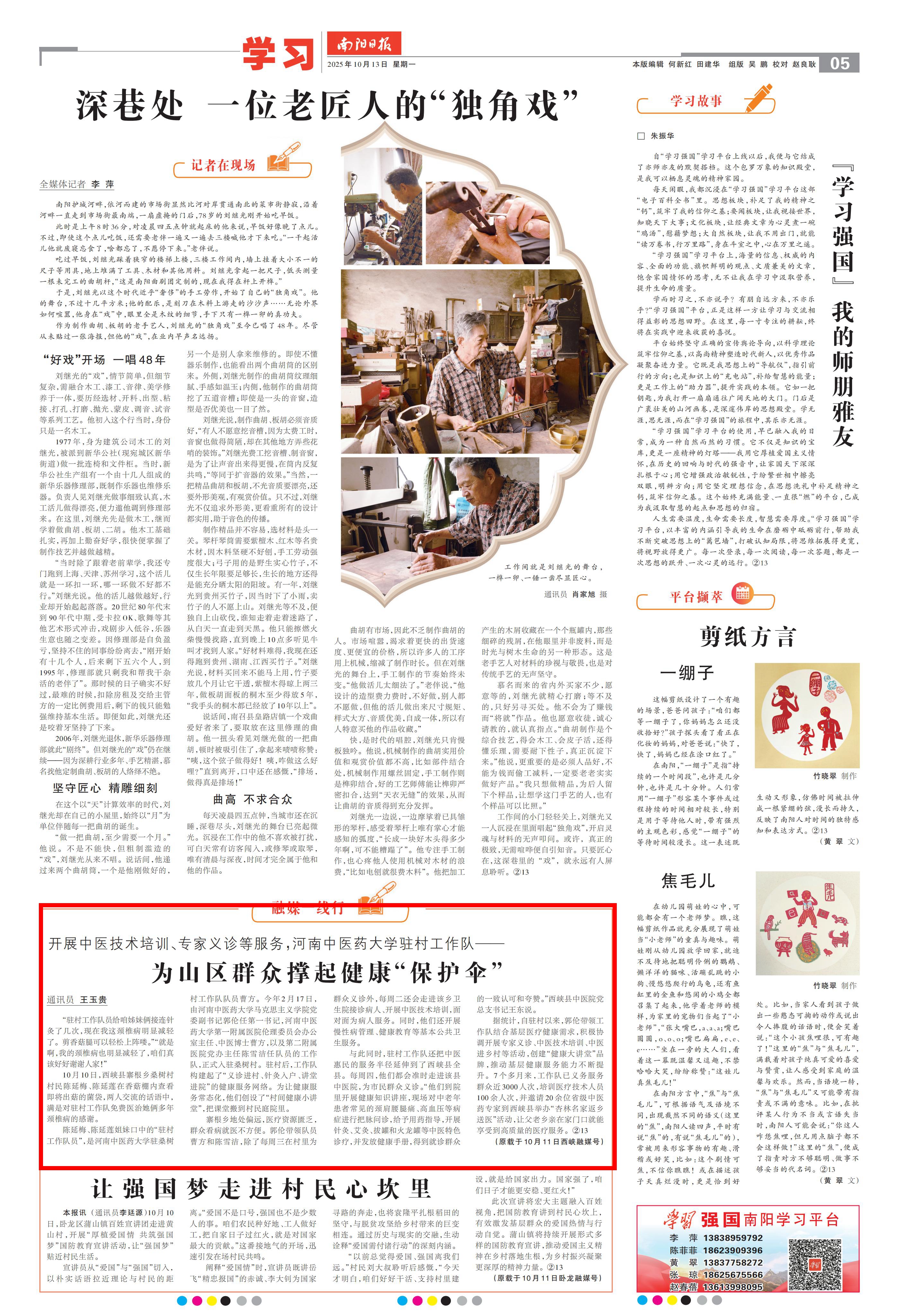 据统计,自驻村以来,郭伦带领工作队结合基层医疗健康需求,积极协调开展专家义诊、中医技术培训、中医进乡村等活动,创建“健康大讲堂”品牌,推动基层健康服务能力不断提升。7个多月来,工作队已义务服务群众近3000人次,培训医疗技术人员100余人次,并邀请20余位省级中医药专家到西峡县举办“杏林名家返乡送医”活动,让父老乡亲在家门口就能享受到高质量的医疗服务。