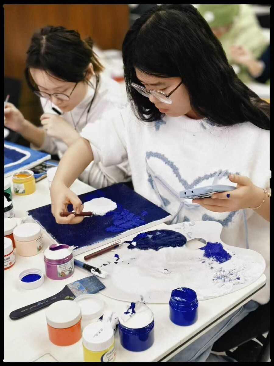 社区内,学生们参与掐丝珐琅、拓片、剪纸等非遗手工制作,放松身心;操场上,八段锦、太极拳等传统养生功法的练习队伍随处可见,学生们在一招一式中缓解焦虑、调节身心。