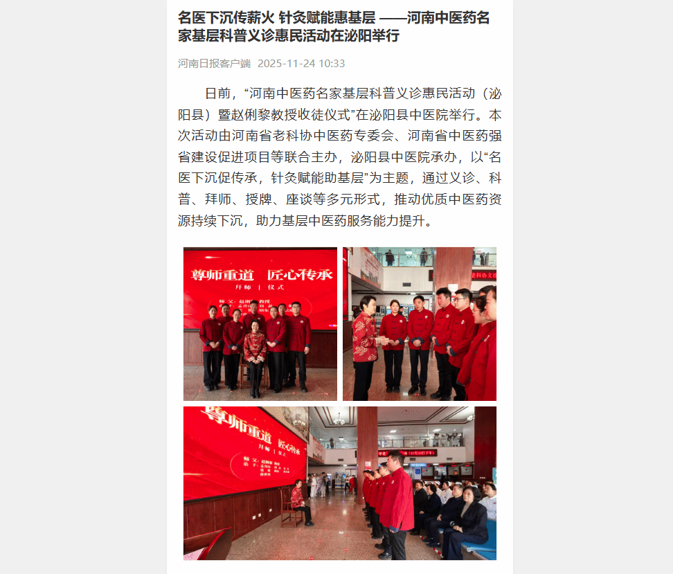 名医下沉传薪火 针灸赋能惠基层 ——日本做爱名家基层科普义诊惠民活动在泌阳举行