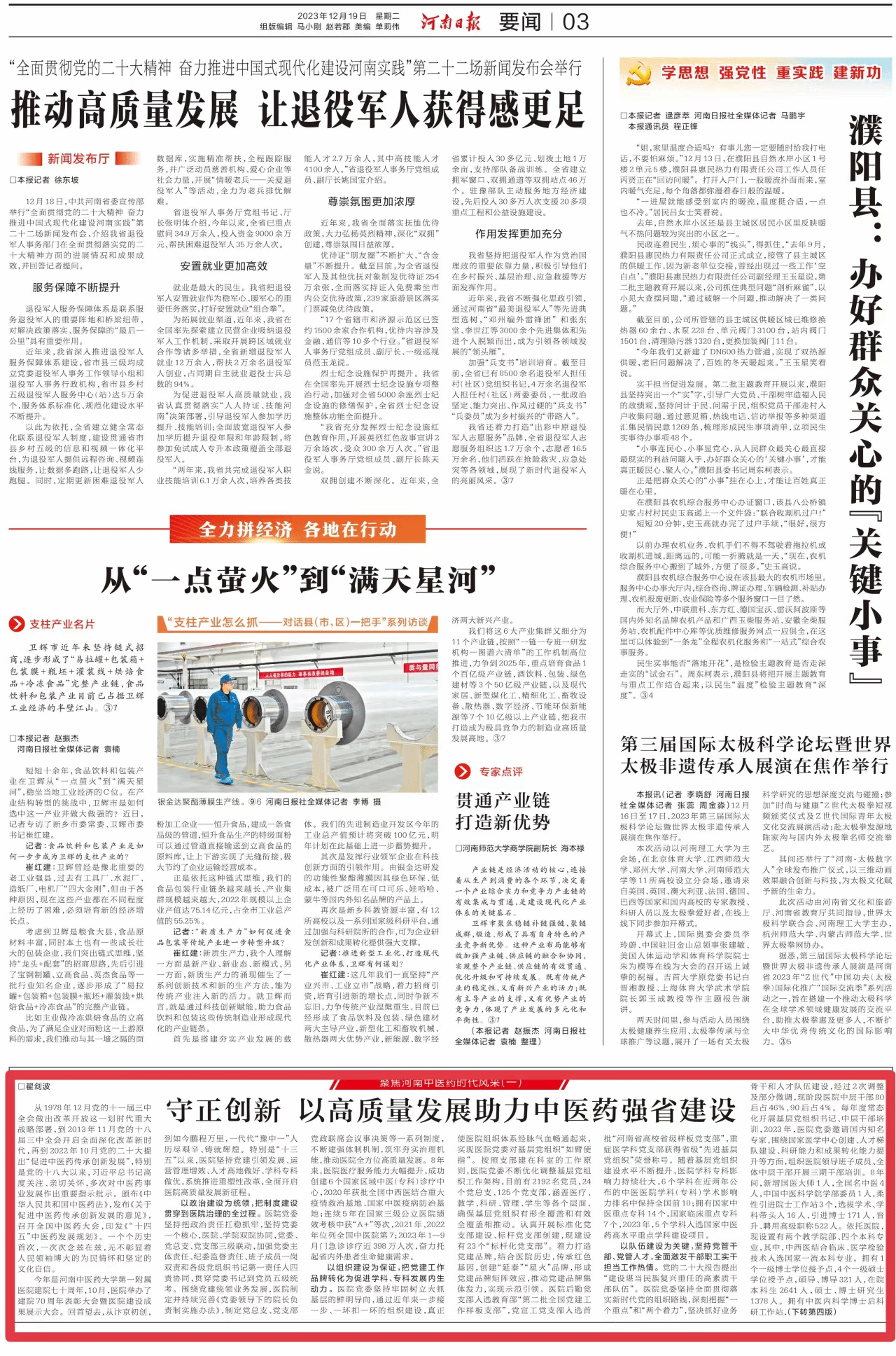 从1978年12月党的十一届三中全会做出改革开放这一划时代重大战略部署,到2013年11月党的十八届三中全会开启全面深化改革新时代,再到2022年10月党的二十大提出“促进中医药传承创新发展”,特别是党的十八大以来,习近平总书记高度关注、亲切关怀,多次对中医药事业发展作出重要指示批示。颁布《中华人民共和国中医药法》,发布《关于促进中医药传承创新发展的意见》,召开全国中医药大会,印发《“十四五”中医药发展规划》。一个个历史首次,一次次念兹在兹,无不彰显着人民领袖博大的为民情怀和坚定的文化自信。