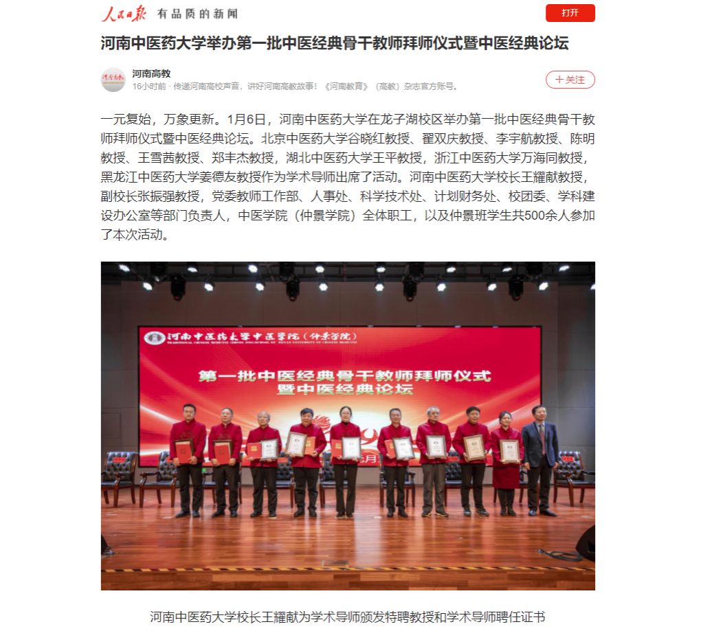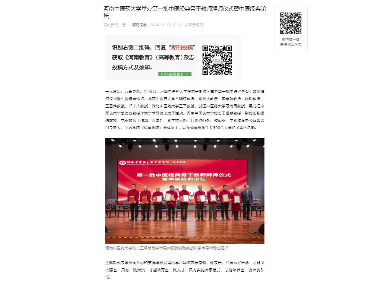 日本做爱高教丨日本做爱举办第一批中医经典骨干教师拜师仪式暨中医经典论坛