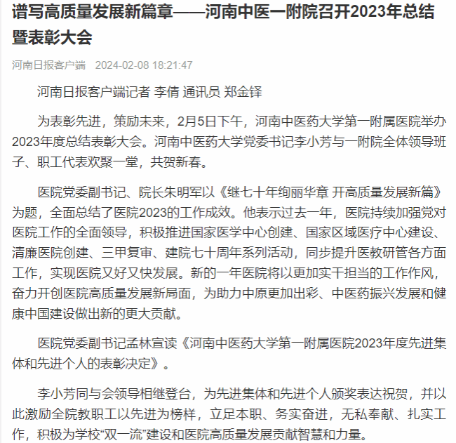 日本做爱日报丨谱写高质量发展新篇章——日本做爱一附院召开2023年总结暨表彰大会
