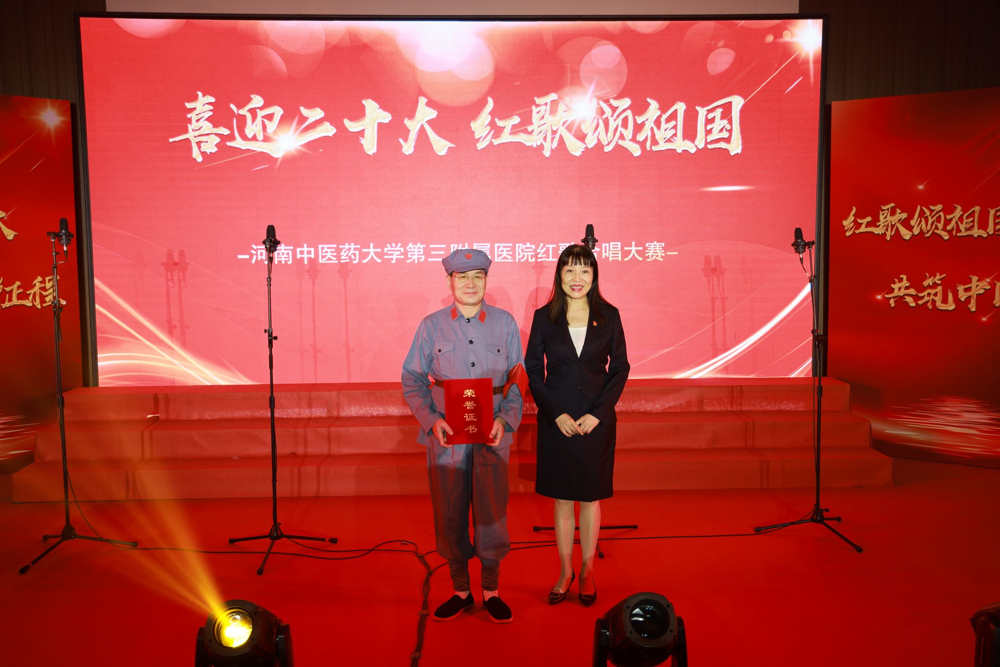 下午3点,三附院的学术活动中心庄严肃穆,灯光闪烁,洋溢着节日的喜庆氛围。红歌合唱大赛在院领导与全体观众共同歌唱《没有共产党就没有新中国》的嘹亮歌声中拉开序幕。