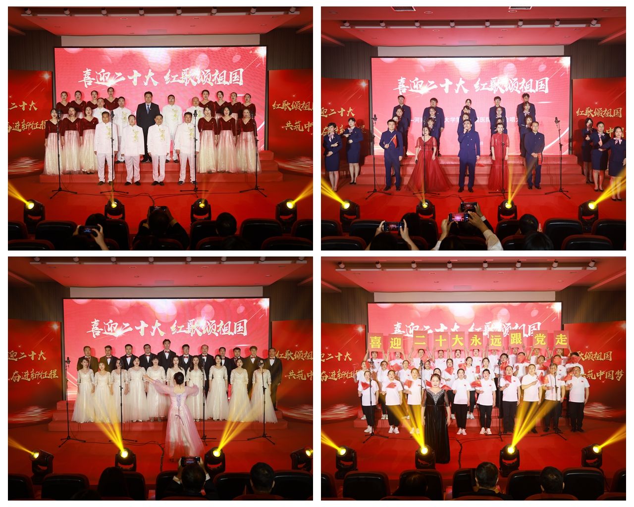 本网讯(文/胡兴旺 李冕 图/潘向昆)一曲红歌,传唱一段峥嵘岁月;一段合唱,歌颂一面光辉旗帜。在全国上下喜迎党的二十大胜利召开和庆祝新中国成立73周年之际,2022年9月29日,三附院教职工生满怀着对党的无限忠诚与祖国的无限热情,放声歌唱,谱写出“喜迎二十大 红歌颂祖国”的动人篇章。院领导张大伟、焦钧、张进一、刘会勋、王志超、高翔、蔡庆春参加活动。全体教职工生通过线上线下收视收看了比赛盛况。