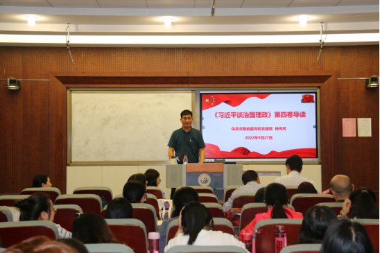 杨伟民教授以《习近平谈治国理政》第四卷导读为题,介绍了这部权威理论著作出版的重大意义、主要内容,重点学习了此书的精髓要义、学懂弄通做实第四卷等4个方面的内容。《习近平谈治国理政》第四卷系统展现了党的创新理论的科学体系和最新成果,对于我们持续深入学习贯彻习近平新时代中国特色社会主义思想,进一步深刻领悟“两个确立”的决定性意义,增强“四个意识”、坚定“四个自信”、做到“两个维护”,以实际行动迎接党的二十大胜利召开,具有重大政治意义、理论意义、实践意义。报告视野开阔、分析透彻,对党员干部精准理解把握《习近平谈治国理政》第四卷的深刻内涵和精神实质具有重要指导作用。