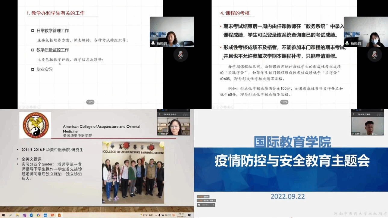 国际教育学院立足办学定位,突出国际化特色,通过全方面、多角度、深层次的入学教育,引导2022级海外办学项目新生找准人生坐标,不负伟大时代,展现青年人担当,不断加强道德修养,提升综合素质,牢固专业思想,在成为“精中医、通语言、善交流”的国际化复合型中医学人才道路上迈出坚实的第一步。