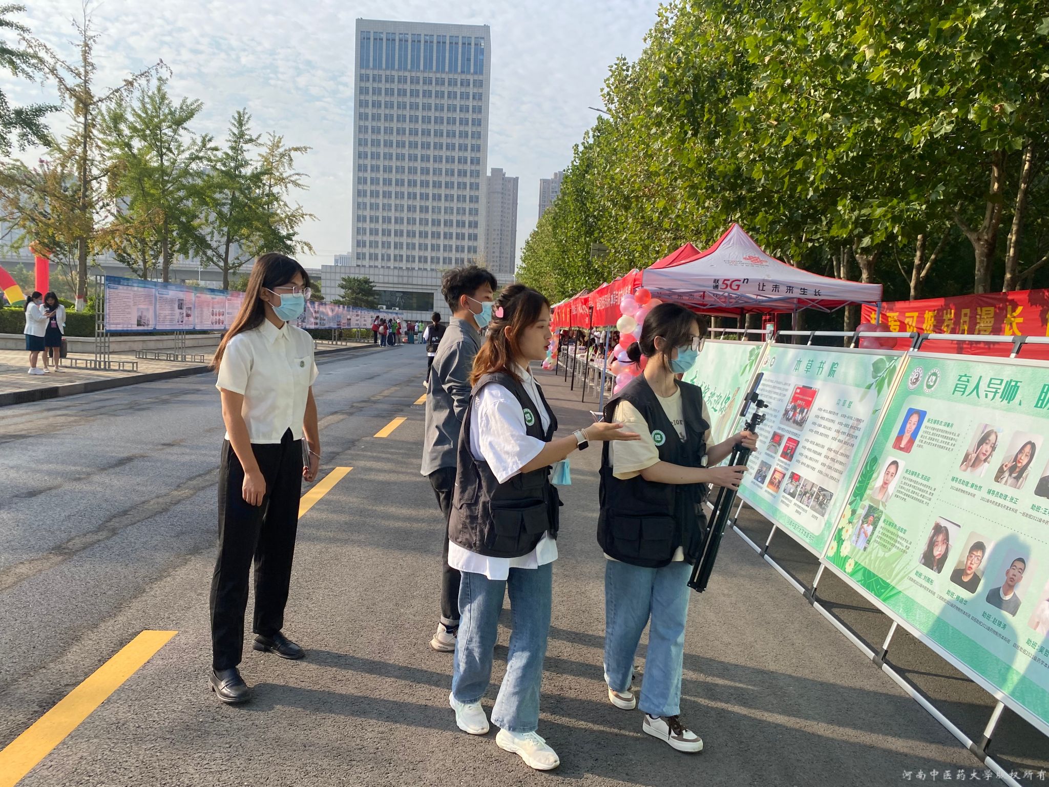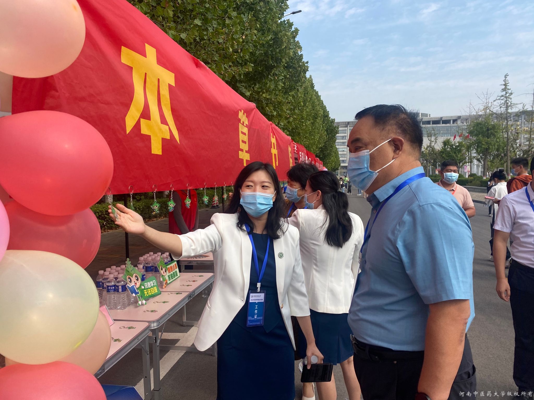 早上8点,小萌新们陆续入校,新生和家长跟随直播镜头,在线体验入校报到全过程。镜头里,家长们清晰地看到,校园里随处可见身穿红马甲和小草服的志愿者,他们帮助新生搬卸行李,办理入校手续。从行李消杀到进入校门,从仲景广场到教学楼,从实验楼到书院社区,从下车站点到入住宿舍,志愿者一路同行,并向新同学介绍学校的大长楼、图书馆、天一湖、书院社区、学校超市、杏苑餐厅等重要场所。“看到第一次离家地孩子能这么快地安顿好,我们家长悬着的心总算放下来了。”站在校门口观看直播的家长欣慰的说道。
