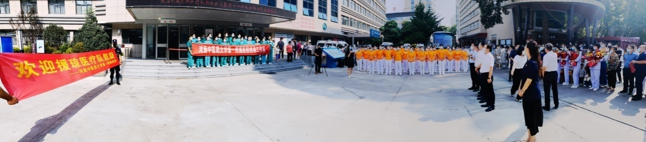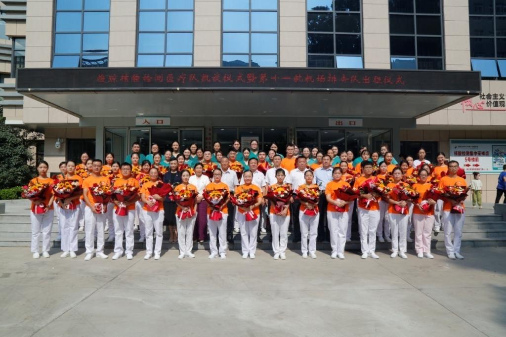 “援琼的经历是我们此生的宝贵财富,我们一定不会辜负全院职工的期望,归队后全身心投入到医院的各项工作中去”“我们一定保质保量完成医院赋予我们的光荣任务,平安归来!”仪式过程中,一附院援琼医疗队领队杨艳明和第十一批机场工作队领队任丽娅分别做了发言。