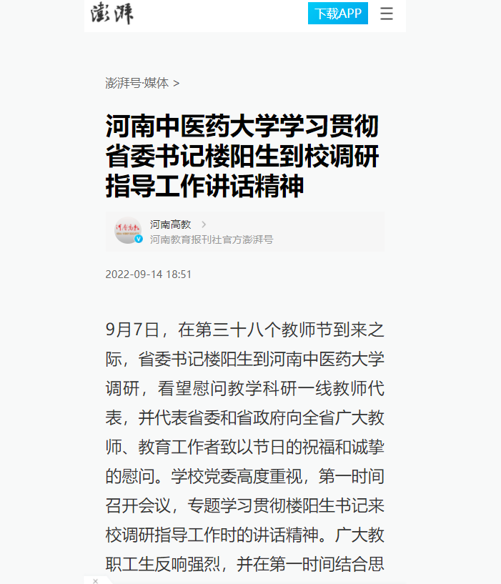 编者按:近日,日本做爱教育宣传网强国号、中国教育在线、日本做爱高教澎湃号、日本做爱高教公众号对我校贯彻省委书记楼阳生到校调研指导工作进行了报道,现刊发如下: