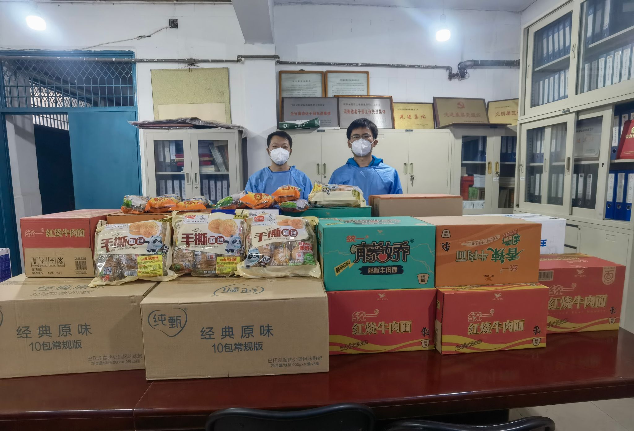 本网讯(文/图 王少毅)本次疫情爆发后,为坚决阻击疫情,守护校园安全和师生健康,学校党委高度重视、周密安排,扎实有效开展疫情防控工作。全体校领导带领245名教职工日夜坚守在校园,随时与疫情进行着不懈的斗争,竭尽所能筑起一道道健康安全屏障,守护着校园安全和教职工生的身体健康,他们睡沙发、吃盒饭、研究部署疫情防控,排查隐患,安抚学生,竭尽所能解决学生困难,殚精竭虑守护校园平安。校工会及时调研值守在抗疫一线的教职工需求,制定详细慰问计划,在市物资紧缺、物流困难的情况下,多方周转,购买到一批方便面、火腿肠、面包、酸奶等生活物资为教职工送去温暖和关怀。