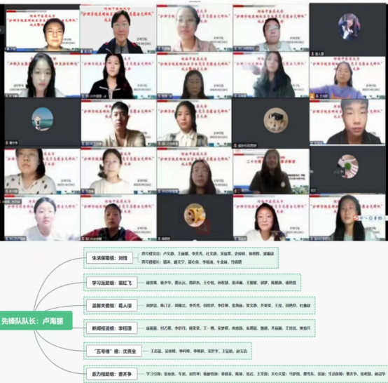 本网讯(文/李钰珊 杨雪 图/护理学院)面对东明校区严峻复杂的疫情防控形势,为进一步凝聚力量,充分发挥党组织的战斗堡垒作用和党员的先锋模范作用,推动疫情防控工作有力有序开展,2022年10月24日,护理学院党委研究决定,紧急成立东明校区临时党支部,组建“护理学院东明校区党员志愿者先锋队”,并于当晚召开先锋队成立暨动员大会。先锋队由学院党委书记尹丽作总协调,副院长秦元梅为总指挥,队长由2019级护理本科二班卢海丽同学担任。下设生活保障组、学习互助组、温馨关爱组、新闻报道组、“五号楼”组、鼎力相助组六个小组,各组分工明确、齐心协力、协调配合,努力守护学生们的身心安全。