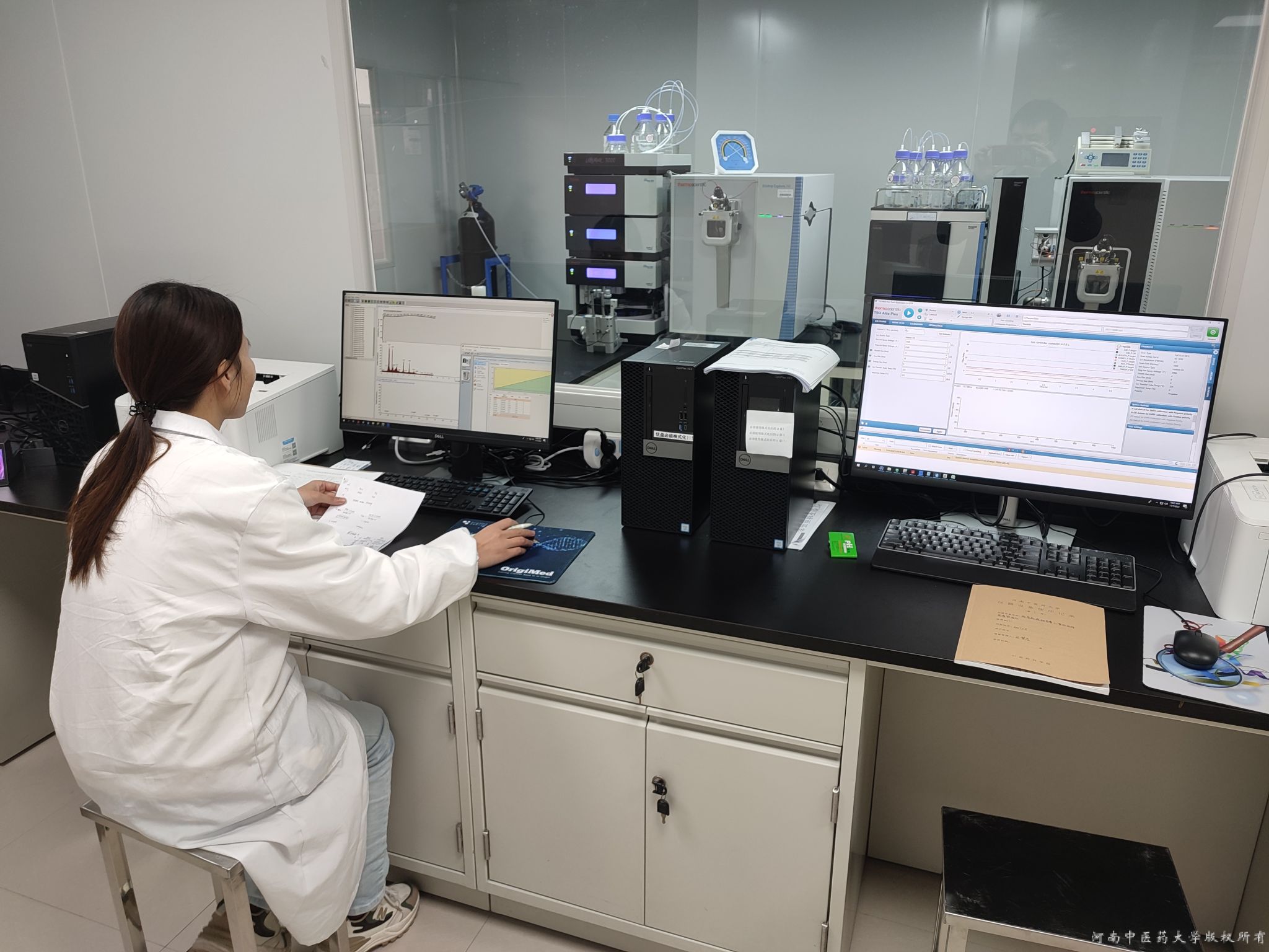 电镜中心主任孙宁化身“网络主播”,为预约电镜拍照的师生开展“云拍照”。“共享的屏幕,流畅的操作,清晰的图片,感觉跟在现场拍照没有区别!”一位接受“云拍照”服务的研究生如是说。关机、清洗、抽真空、校准、上样、更换流动相……质谱室的孙淑仃博士,正在为仪器做清洗维护,性能每日一检,这是科研服务背后为保证实验数据精准的仪器管理日常。作为本次科研公共平台唯一一名驻校女教师,她每天坚守在仪器旁,守护仪器运行的同时还不忘通过手机和仪器预约人做好“云对接”,耐心细致的科研服务获得师生一致好评,虽然是新仪器,整个11月的预约服务都已经排满了。高效液相室负责人王潘博士,自己爱人正处在博士攻坚阶段,家中还有老人和2个年幼的孩子需要照顾,尽管如此,面对突如其来的疫情,他还是选择毅然坚守在学校,对家人只能采用“云问候”。“3台高效液相设施需要正常运行,多项实验技术需要持续推进,我必须留下!”王潘如是说。疫情下,校园封闭的特殊时期,每一位值守人员都在用自己的方式默默守护着学校。