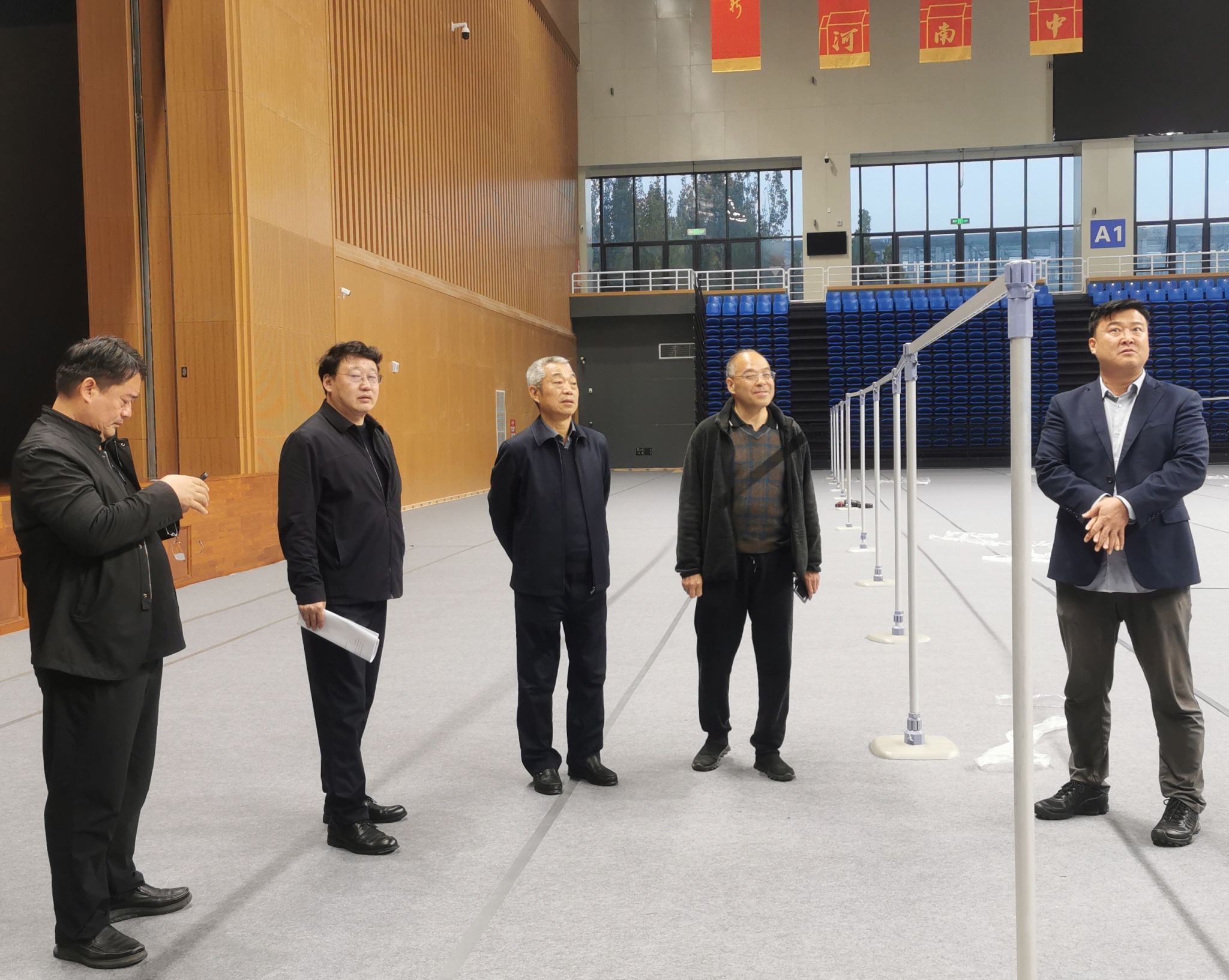会后,冯轩友一行实地考察了校体育馆,重点查看了拟承办省教育后勤协会乒乓球赛的场地设施,对我校赛事筹备工作表示认可。